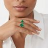 Embrace nature’s elegance with this stunning green clover between-the-finger ring, featuring two sculpted malachite inlays framed with fine gold-beaded edges.