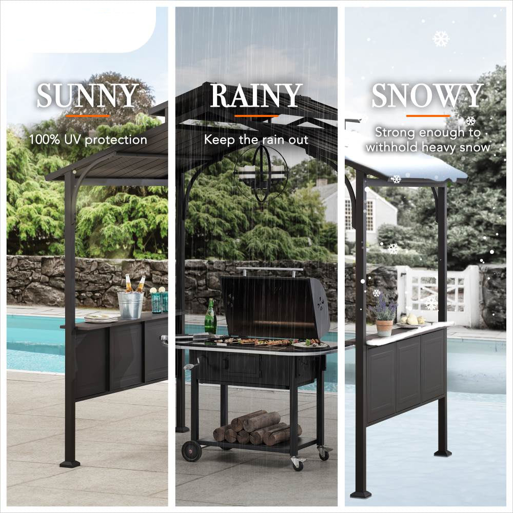 Grill Gazebo With Steel Roof And Side Shelves For Outdoor BBQ