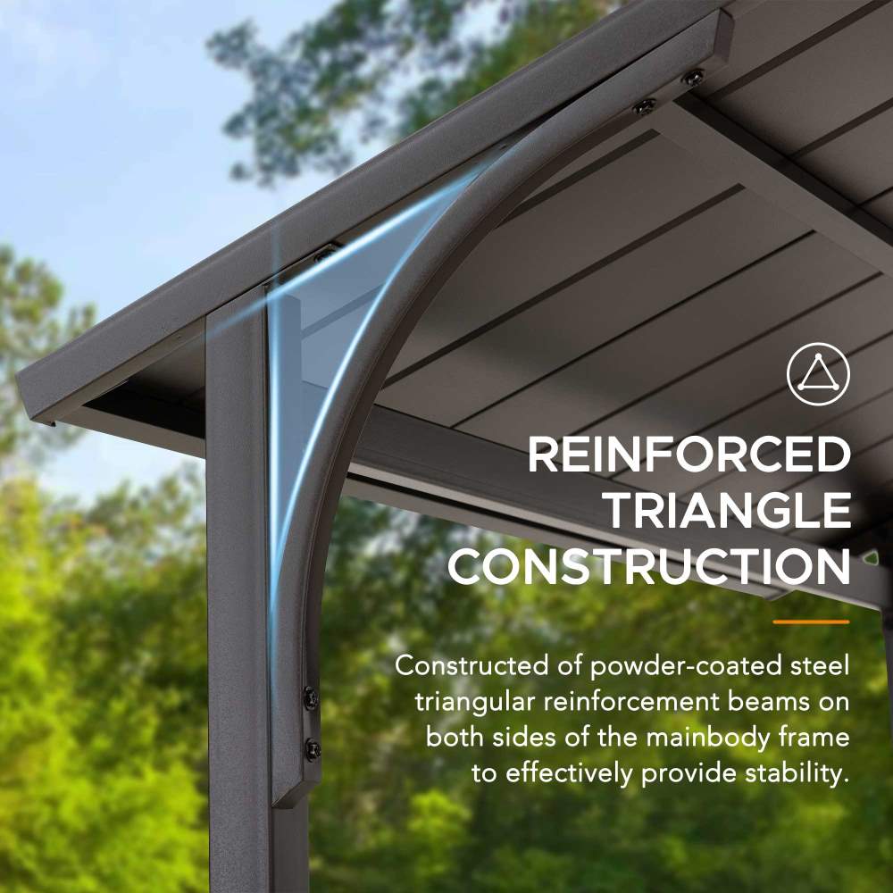 Durable hardtop grill gazebo with ventilated double roof and built-in side shelves, perfect for year-round outdoor barbecues and backyard cooking.