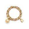 Measuring 19 cm in length, the bracelet features chunky chain links accented by sculptural sphere and padlock-style charms—adding a touch of edge to everyday sophistication.
