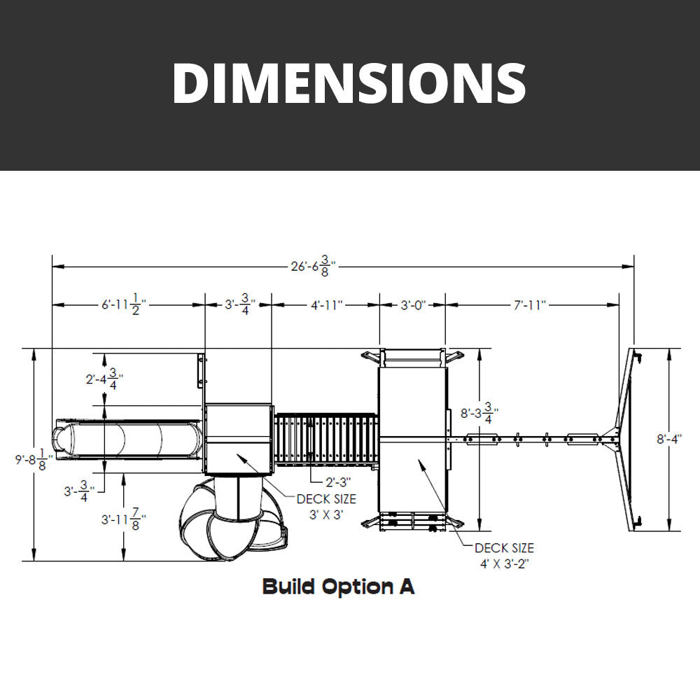 - Dual Towers: 5 ft play deck and 4 ft play deck connected by a fun clatter bridge