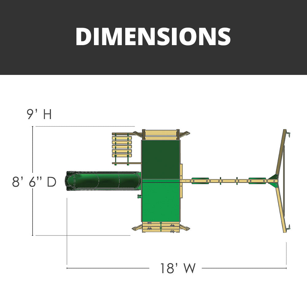 - Assembled Dimensions: 18’W × 8’6″D × 9’H