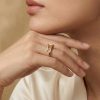 Crafted from 925 sterling silver and finished in 18K yellow gold vermeil, this statement ring features pavé-set cubic zirconia (CZ) stones that add a refined touch of sparkle to its minimalist form.
