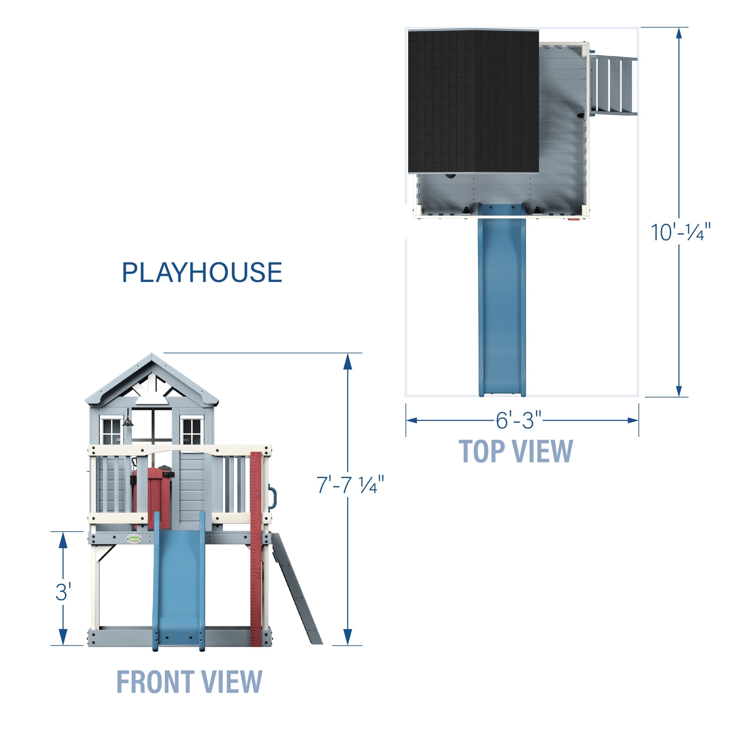 Kids Outdoor Playhouse with Slide – Elevated Blue Playhouse with Ladder & Balcony