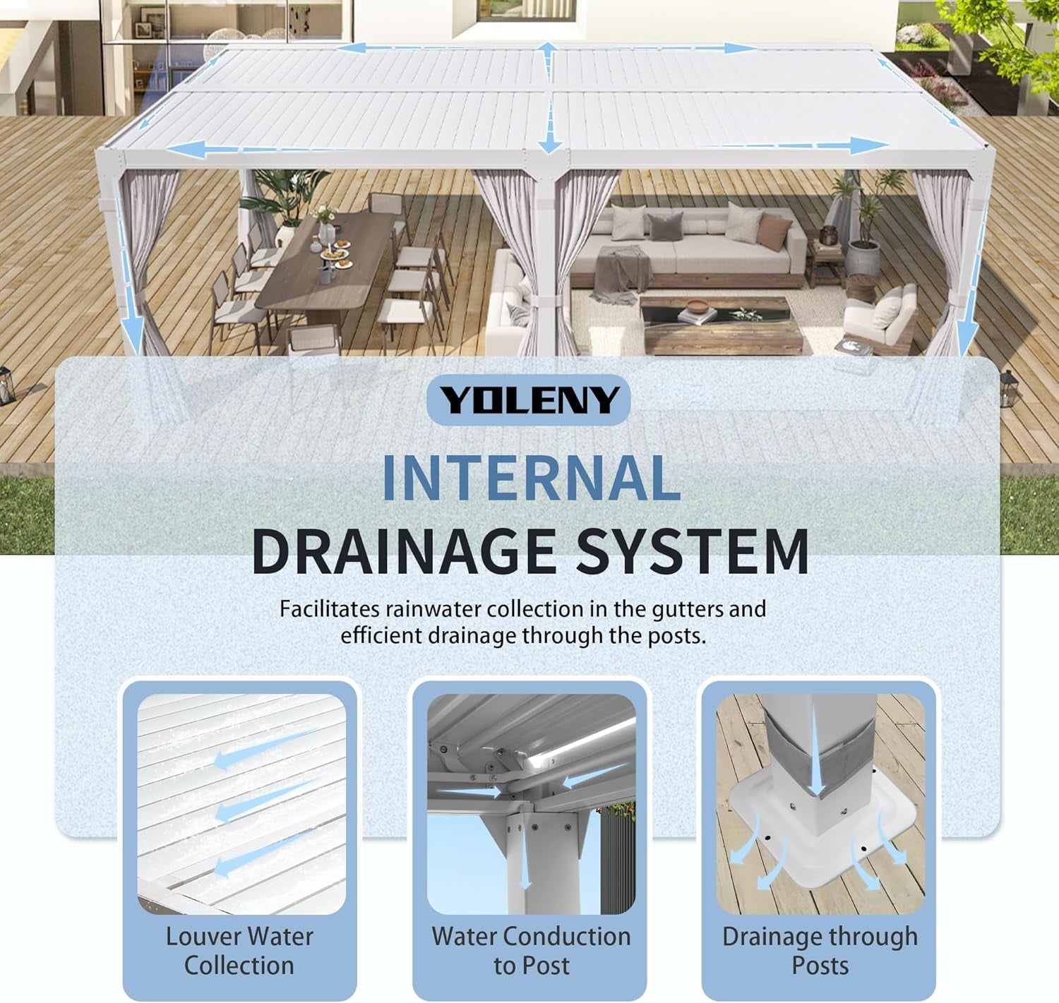 - High Quality:Crafted from all aluminum, this pergola features a sturdy frame powder-coated in white along with aluminum louvers, ensuring comprehensive durability and a unified appearance.Wind resistance:60-80 MPH.