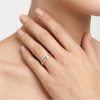 Crafted from 925 sterling silver and finished in 18K rose gold vermeil, the ring showcases a warm, polished glow that complements its sculptural design. Its sleek lines and subtle sparkle make it a versatile piece suited to both everyday styling and special occasions.