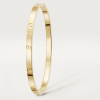 The Love Classic Small Bracelet is a refined expression of minimalist luxury. Expertly crafted from 925 sterling silver and finished in radiant 18K gold vermeil, it offers a high-polish surface with lasting brilliance and excellent tarnish resistance. Measuring just 3.65 mm in width, this slender bangle features the signature screw-head detailing, delivering a timeless, industrial-inspired aesthetic.