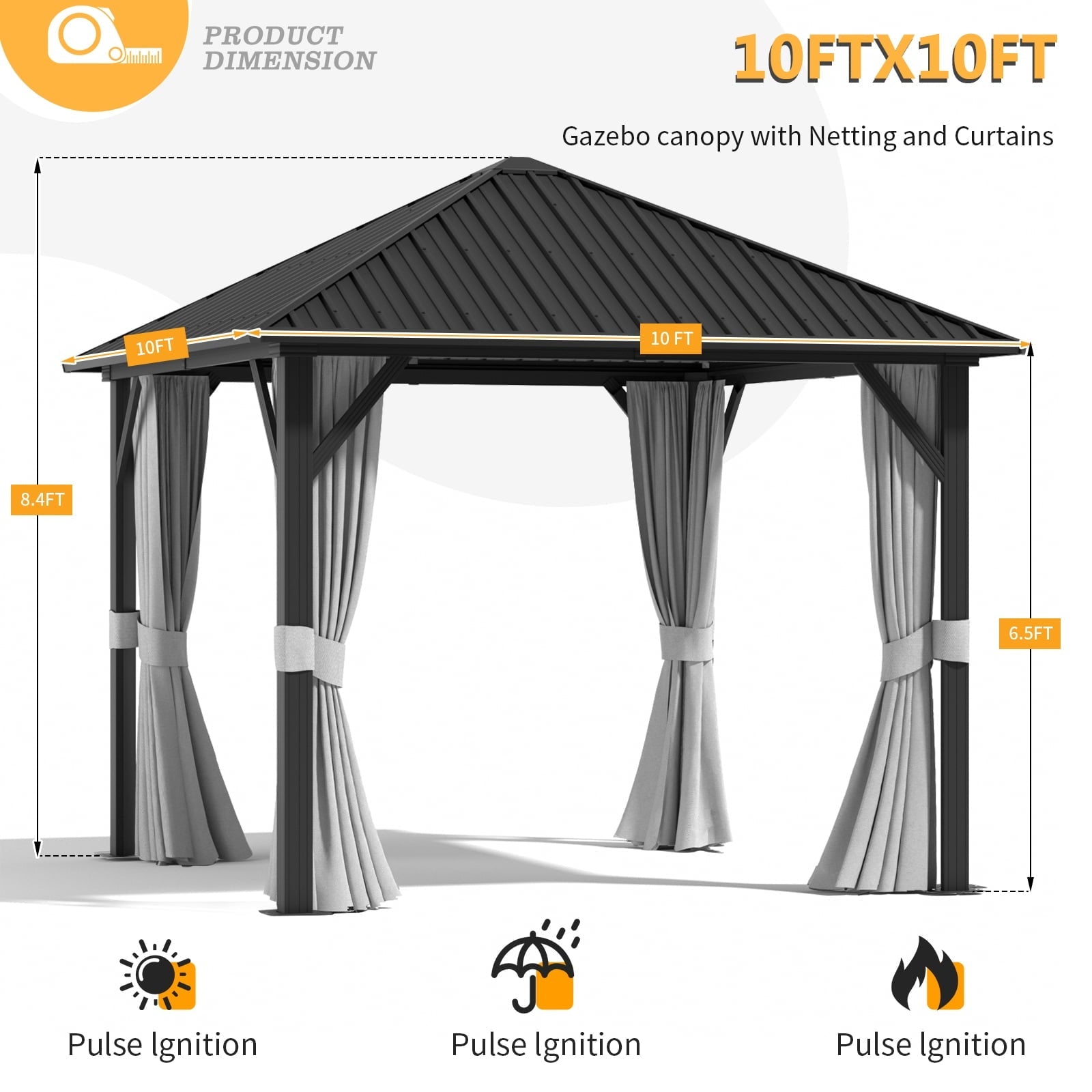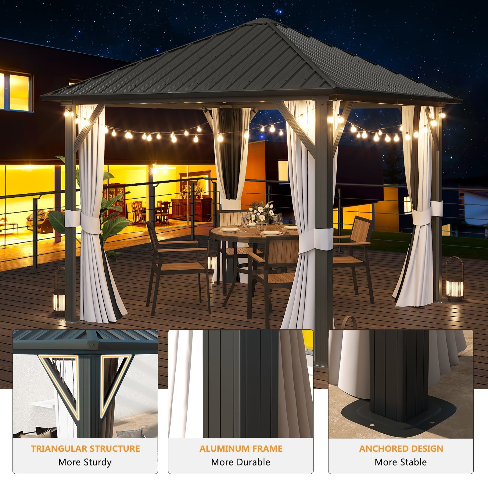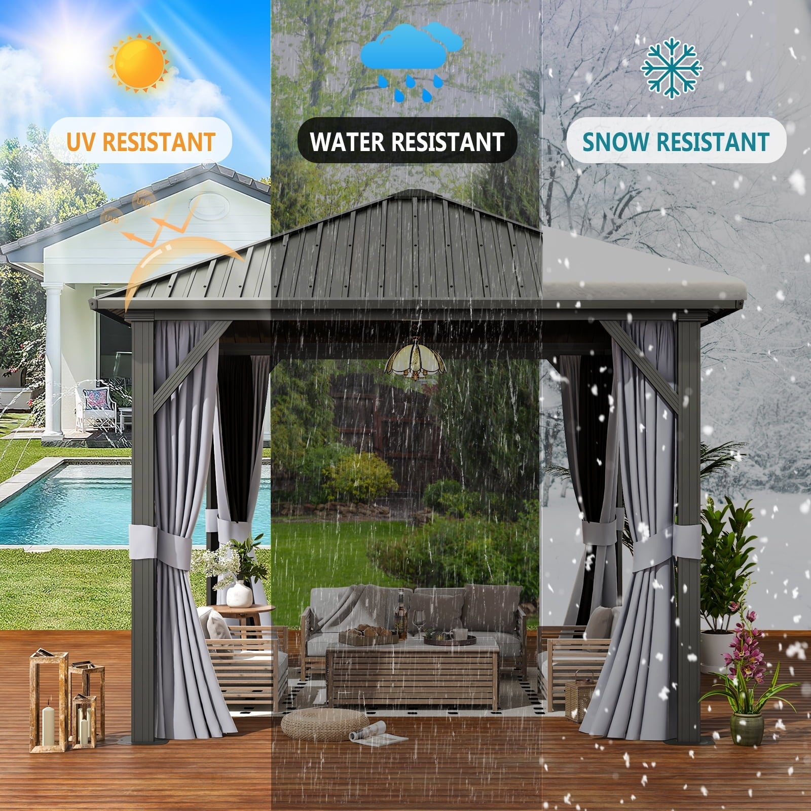 Upgrade your outdoor living space with this luxury gazebo, featuring a strong metal roof and elegant curtains. Perfect for poolside relaxation, backyard gatherings, and garden retreats.