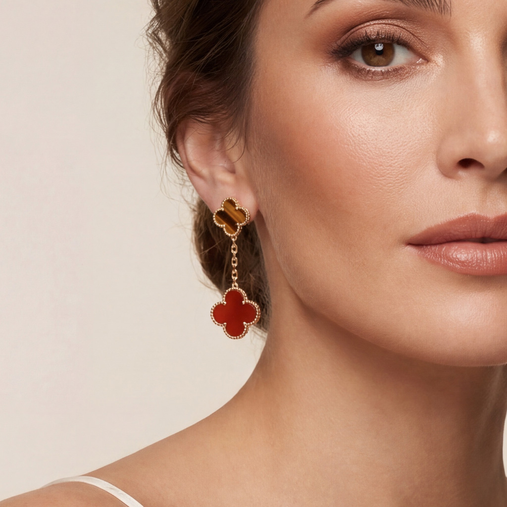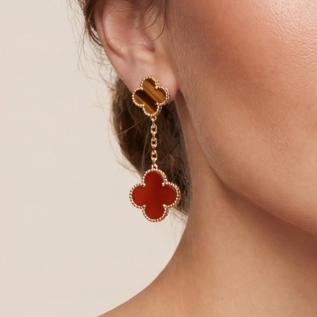 Magic Alhambra Carnelian & Tiger Eye Earrings