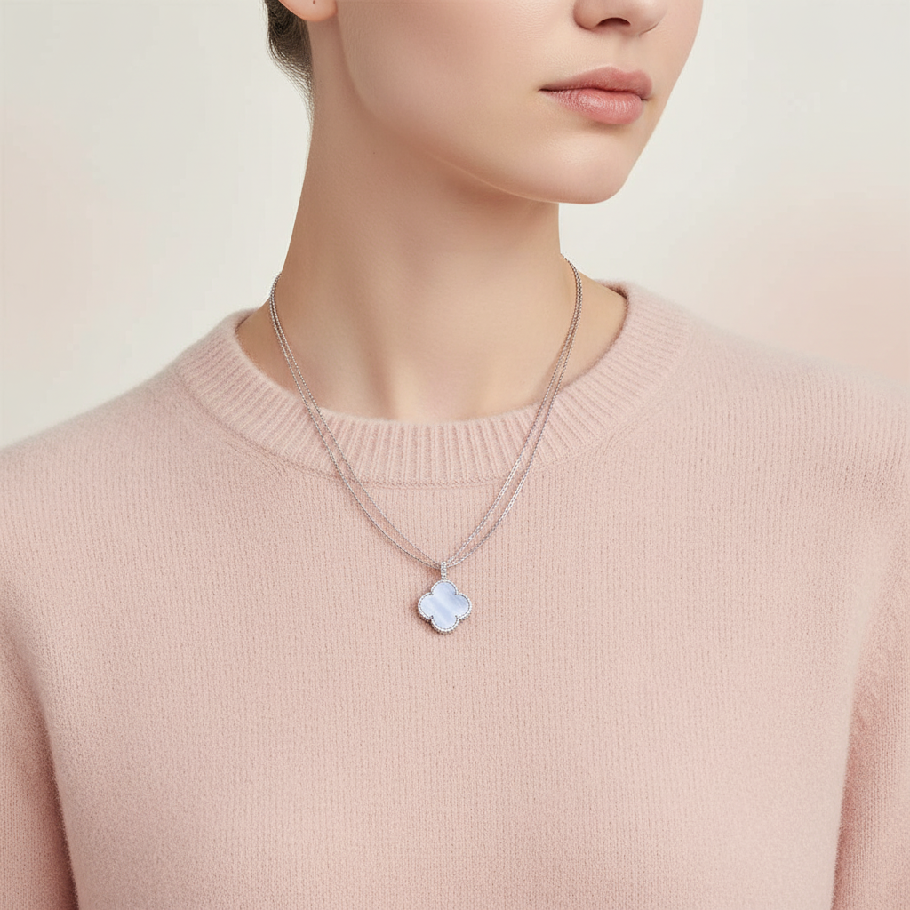 The Magic Alhambra Purple Clover Necklace is a graceful fusion of artistry and timeless elegance. Featuring the iconic clover-shaped pendant, it is handcrafted in 18K white gold vermeil over a solid 925 sterling silver base, offering a radiant finish with refined detail.