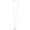 Suspended from a 90 cm chain and secured with a hallmark clasp, the pendant is coated in luminous purple enamel—symbolizing creativity and serenity.