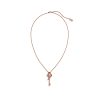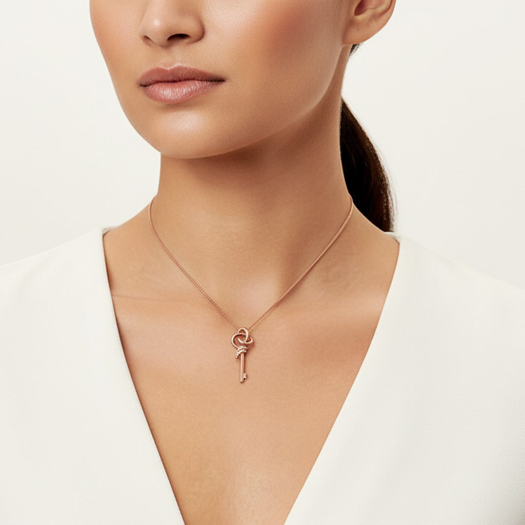 Crafted from 18K rose gold vermeil over a 925 sterling silver core, it delivers the brilliance of gold with excellent durability. The delicate key-shaped pendant is accented with cubic zirconia (CZ) stones totaling 0.18 carats, creating a soft and refined sparkle.