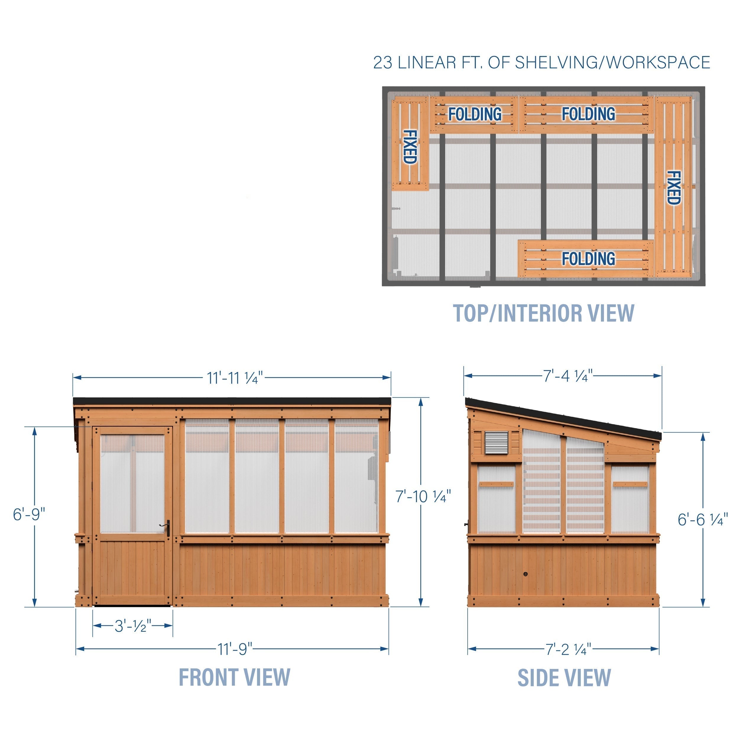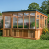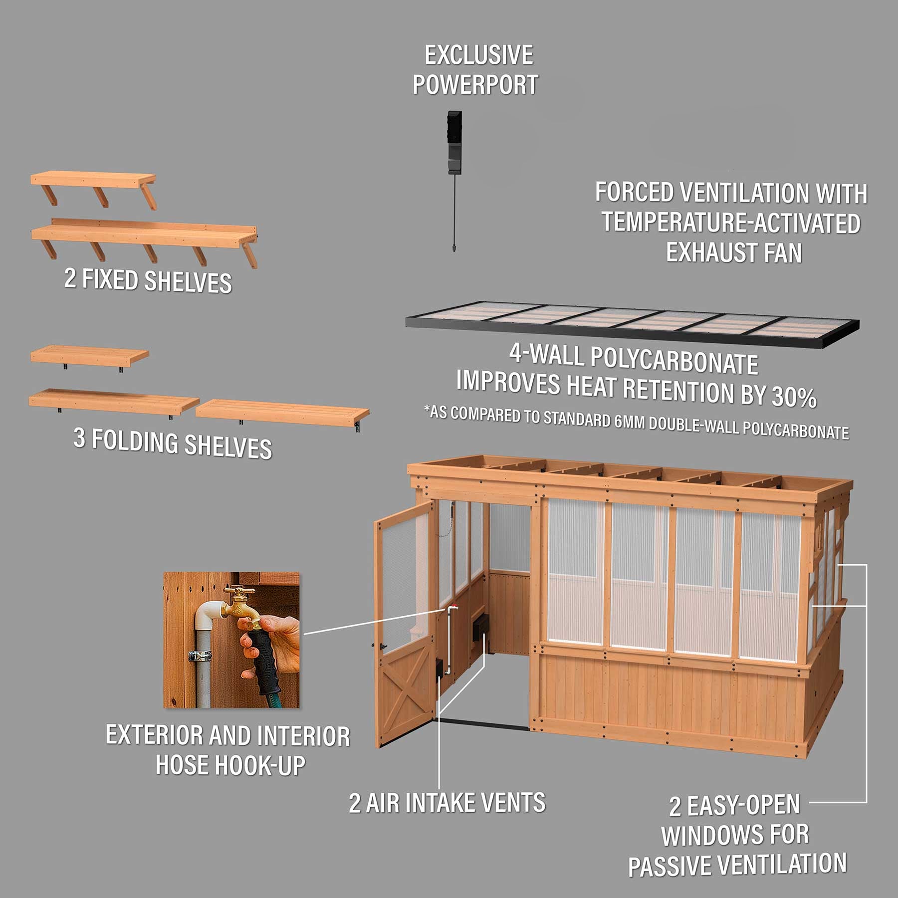 Modern Cedar Wood Greenhouse – Lean-to Garden Greenhouse with Polycarbonate Panels