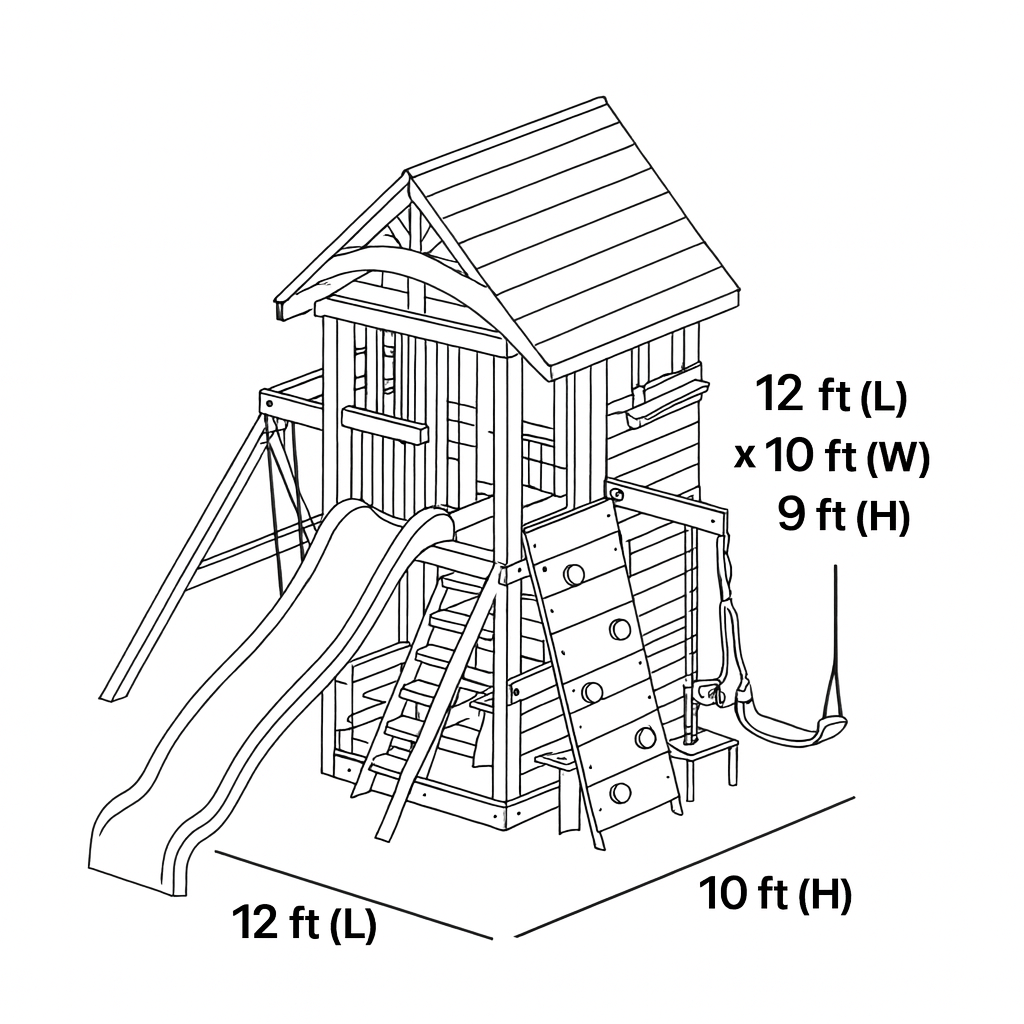 - Dimensions: Approx. 12 ft (L) × 10 ft (W) × 9 ft (H)