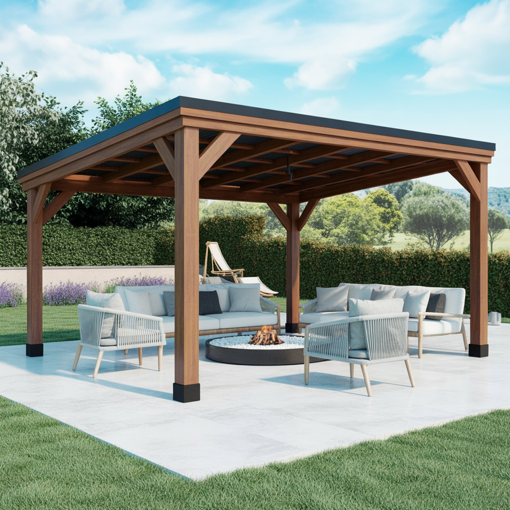 Modern Flat Roof Wooden Gazebo – Outdoor Patio Pergola for Backyard Lounge & Garden