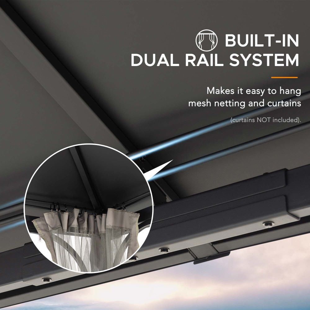 Transform your outdoor space into a modern retreat with this elegant gray metal gazebo. Featuring a sturdy steel frame, a double-tier roof, and sheer curtains, it combines durability with style for an inviting backyard lounge or patio area.