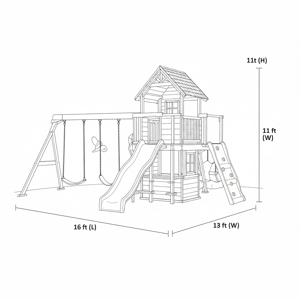 - Dimensions: Approx. 16 ft (L) × 13 ft (W) × 11 ft (H)