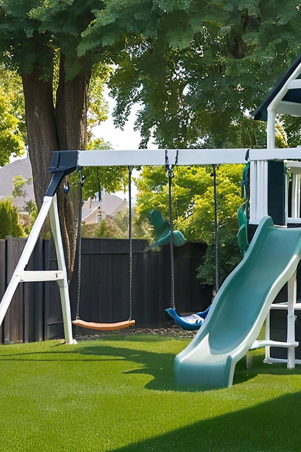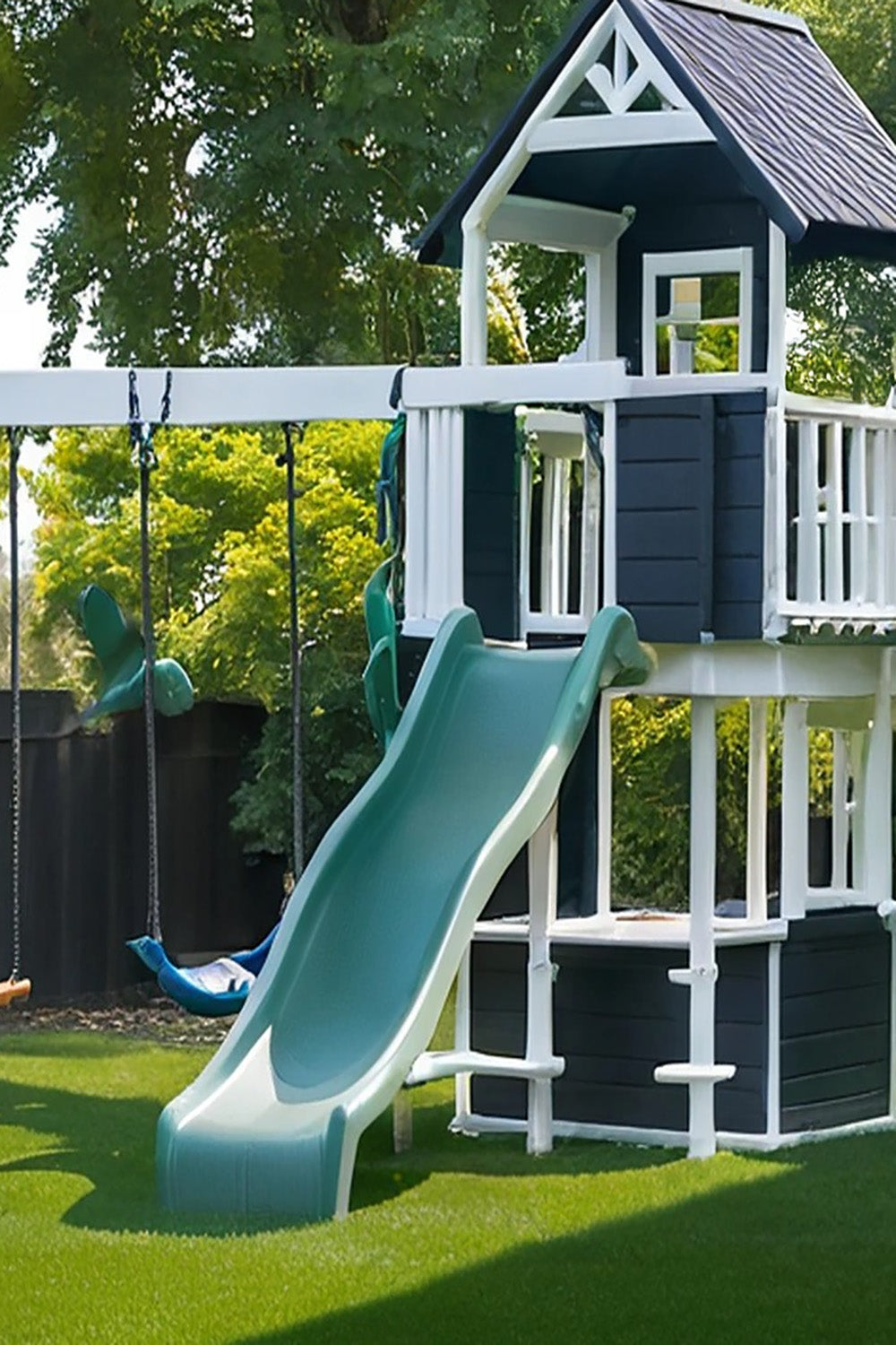 Bring style and excitement to your outdoor space with the Modern Two-Tone Backyard Playset, where kids can swing, slide, and climb in a safe, stylish environment.