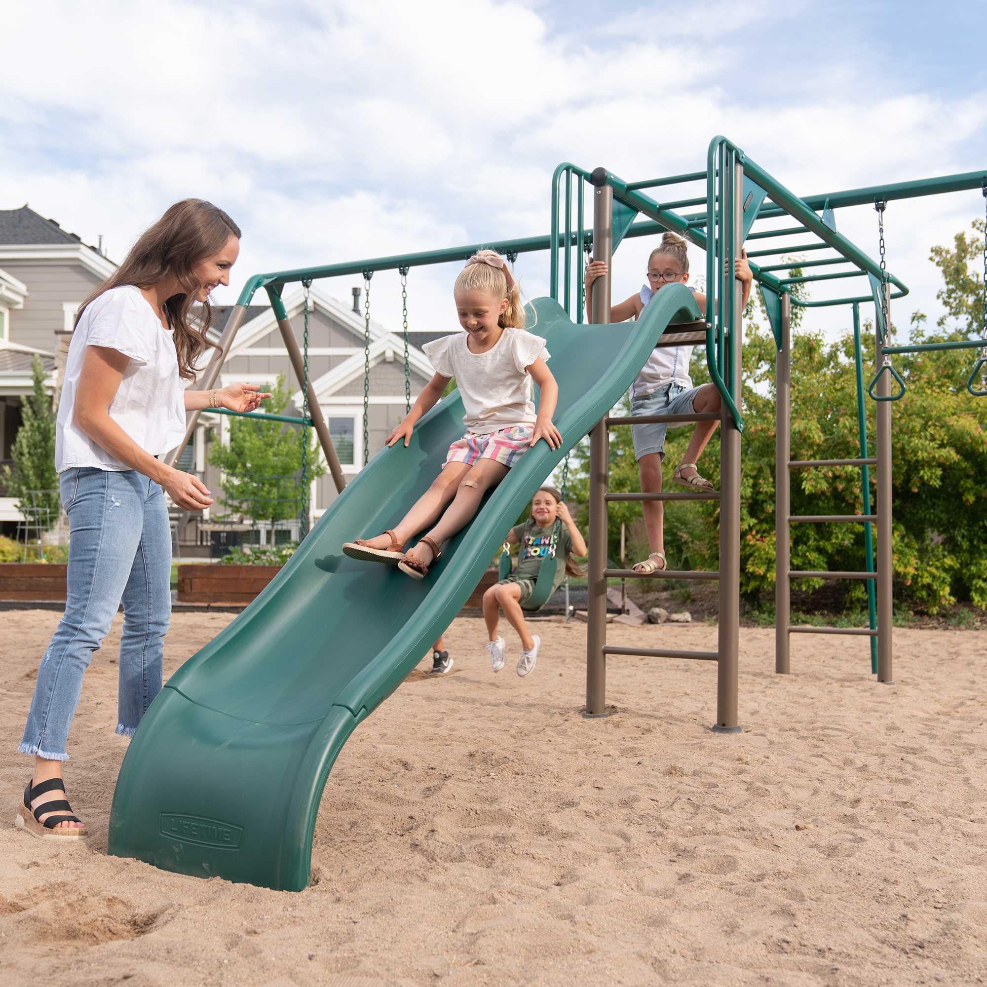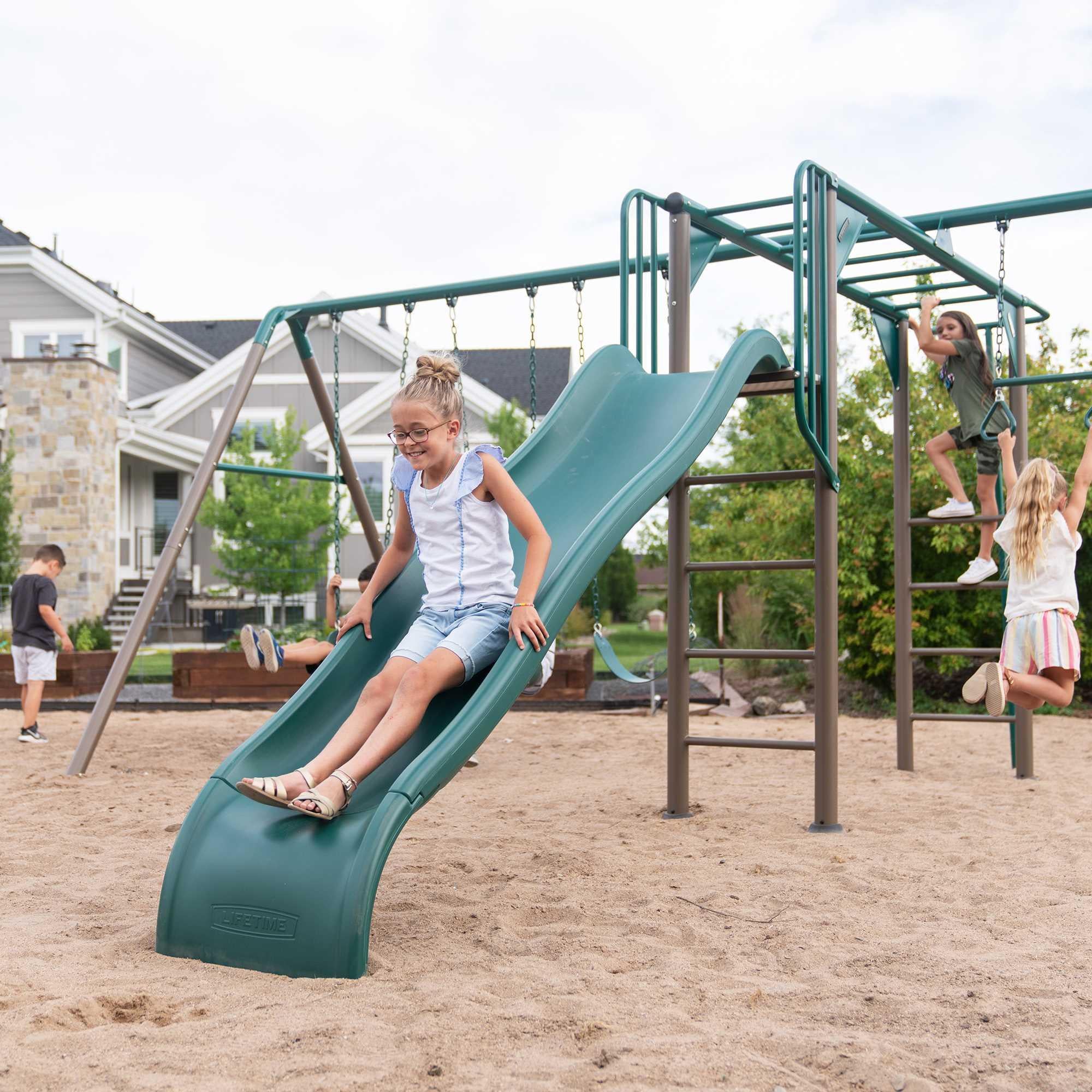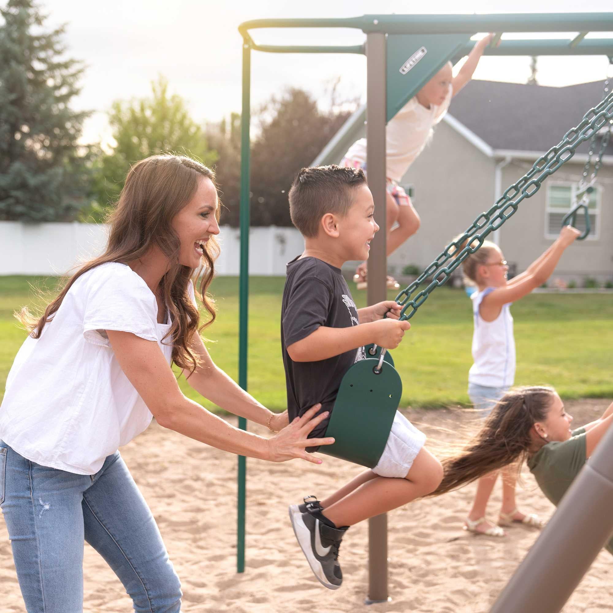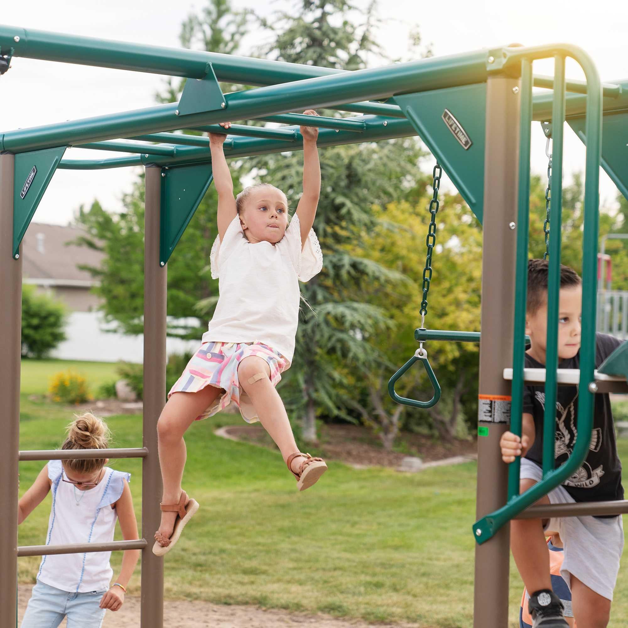 Create a backyard jungle adventure for your kids today with the Monkey Bar Adventure Swing Set. Let their imaginations run wild!