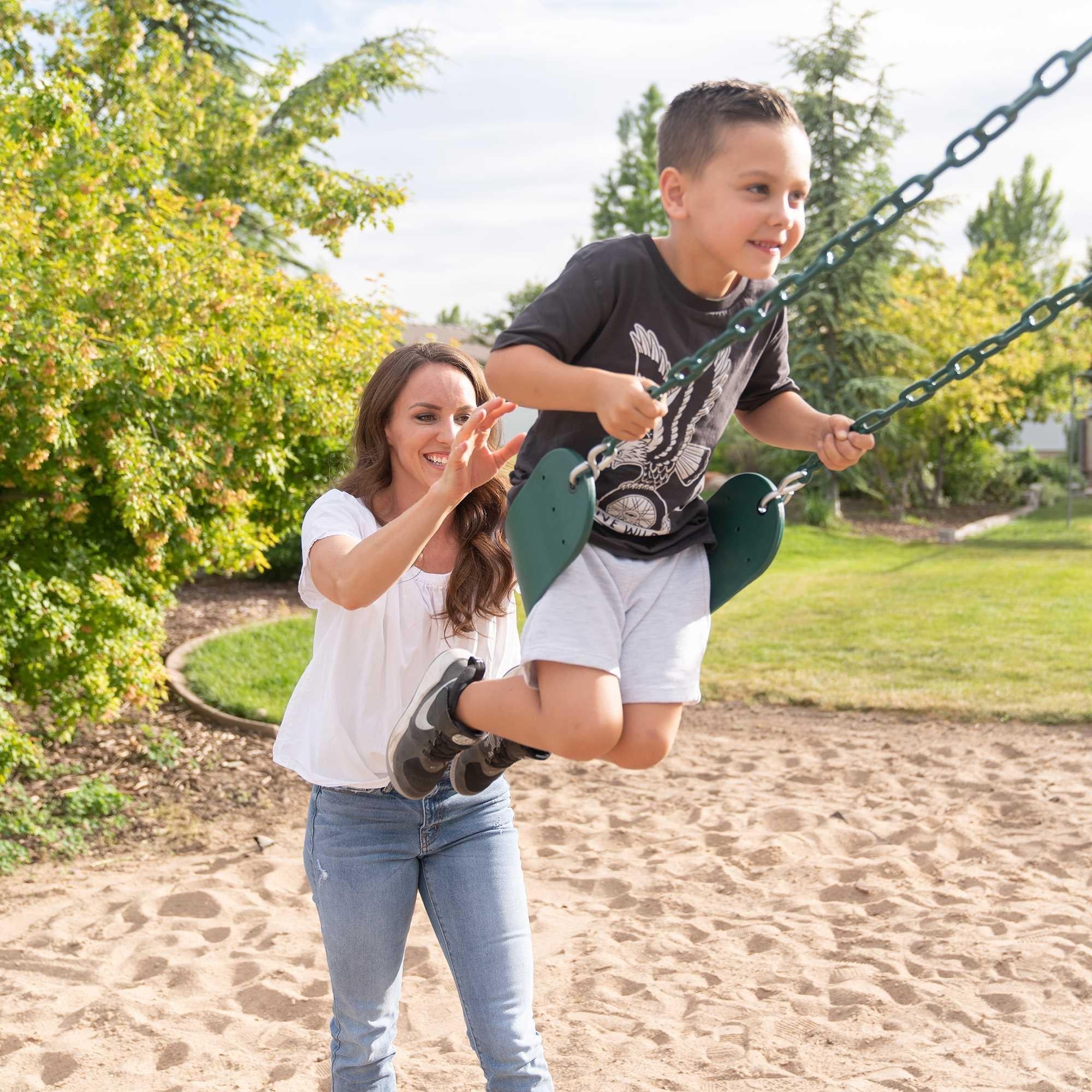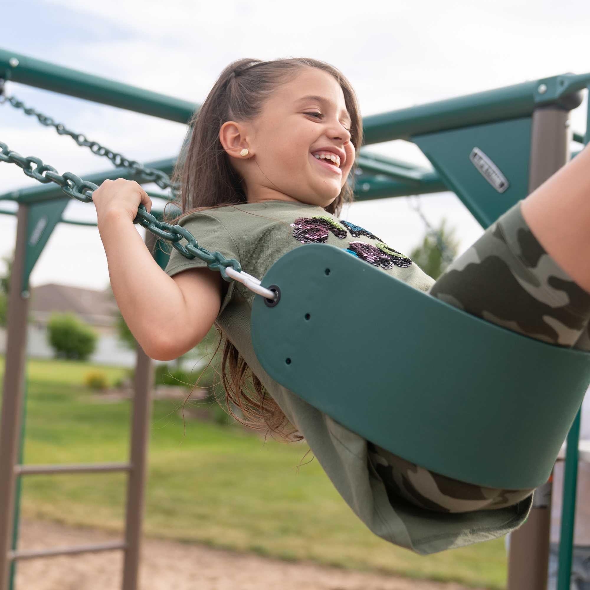 Let your kids swing through the vines on the monkey bars, soar through the air on the trapeze bar, and take thrilling slides down the river. This swing set is not just a play area—it’s a gateway to limitless imagination.