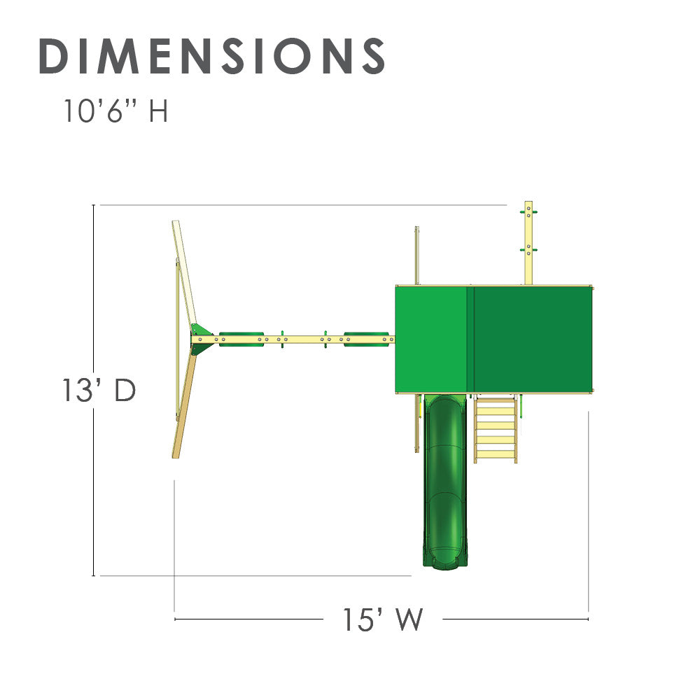Picture this: little aerialists soar through the air on trapeze bars, the spacious play deck becomes a base for daring routines, and the Alpine Wave Slide is the grand finale escape route.