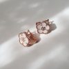 Pnstime Lucky Spring White Blossom Rose Gold Earrings