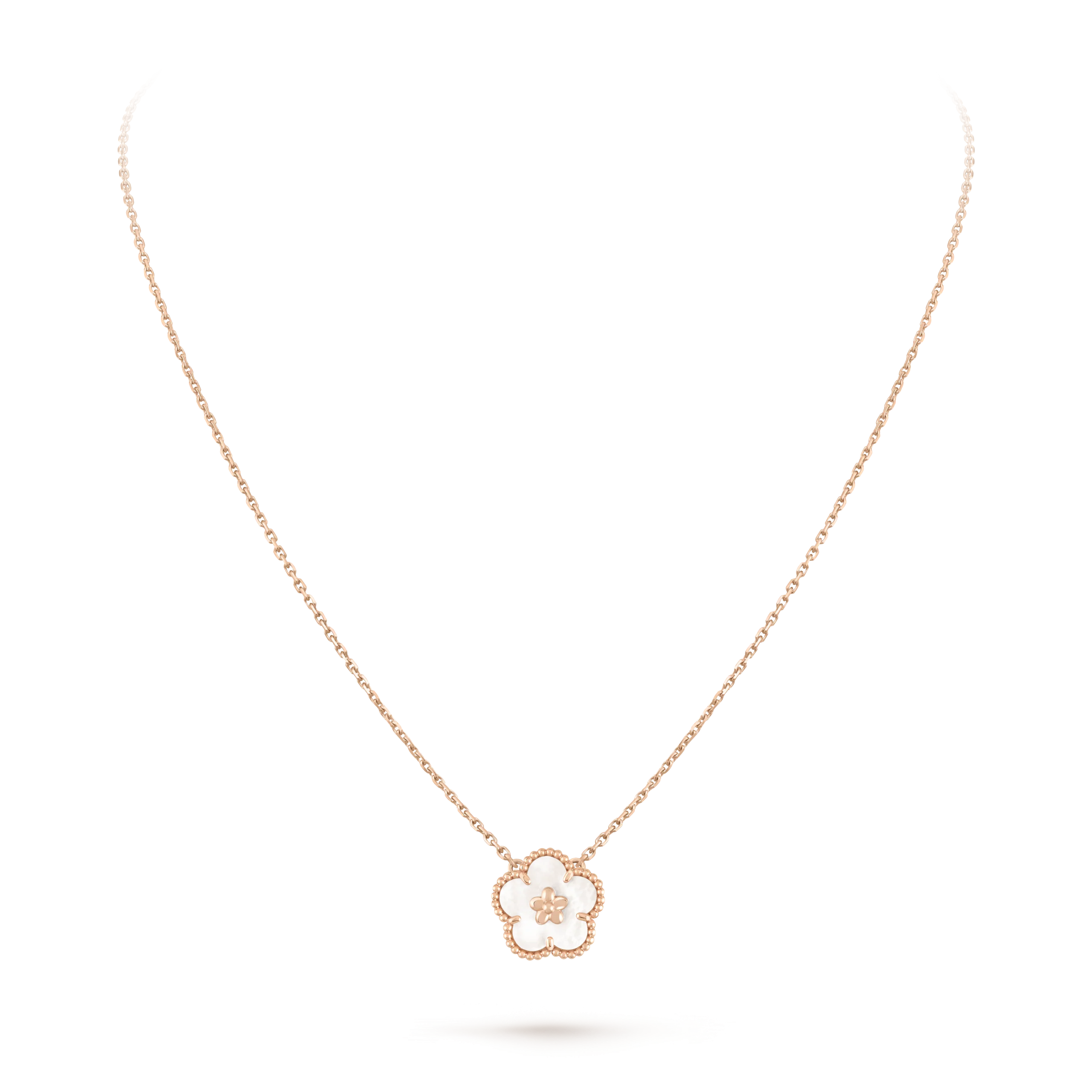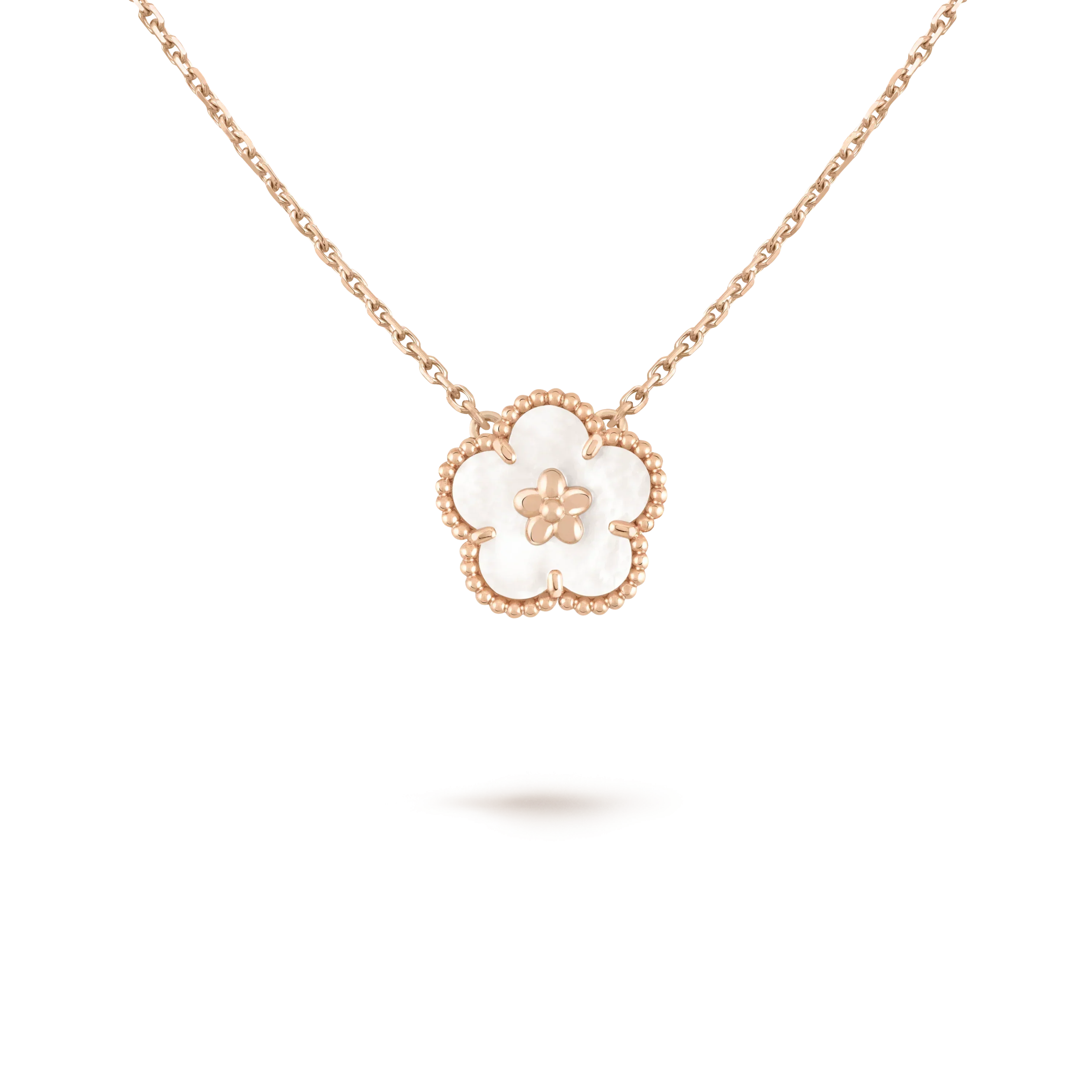 Pnstime Lucky Spring White Blossom Rose Gold Pendant