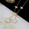 The Pnstime Magic Alhambra Six Pearls Motifs Clover Necklace for Women is a refined piece crafted from 18K Vermeil gold over a sterling silver core, ensuring both durability and hypoallergenic comfort. Inspired by the iconic clover leaf, it features six meticulously designed motifs accented with luminous mother-of-pearl, adding subtle elegance. The 42cm chain includes adjustable jump rings, allowing for a personalized fit suitable for various necklines. This necklace combines timeless sophistication with everyday practicality, making it an exceptional gift choice that carries both aesthetic appeal and symbolic meaning.