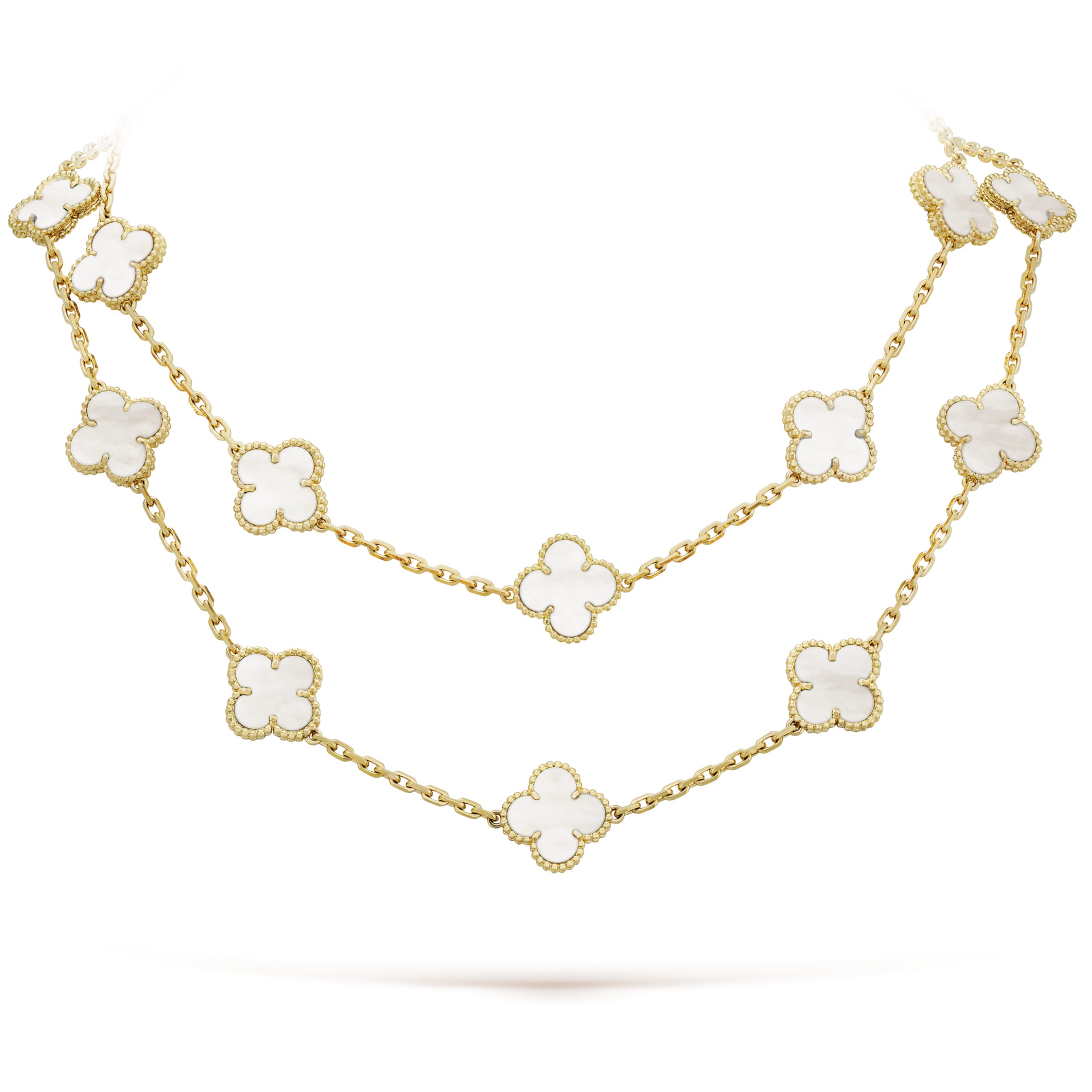 Pnstime Pearl Vintage Alhambra 20 Motifs Long Necklace Jewelry Gift