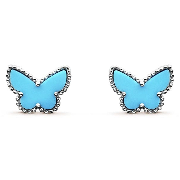 Elevate your jewelry collection with the Pnstime Sweet Alhambra Butterfly Stud Earrings, expertly crafted to blend elegance and durability. These earrings feature a 925 sterling silver core enhanced by a substantial 2.5-micron layer of 18K white gold vermeil, ensuring lasting shine and resistance to tarnish. The delicate butterfly motif is adorned with smooth turquoise inlays, precisely sized at 10.5 mm by 8 mm, offering a refined yet whimsical appeal. Designed for comfort and hypoallergenic wear, they suit sensitive skin and daily use. Ideal as a thoughtful gift or a sophisticated addition to your everyday style, these earrings embody timeless craftsmanship and vibrant charm.