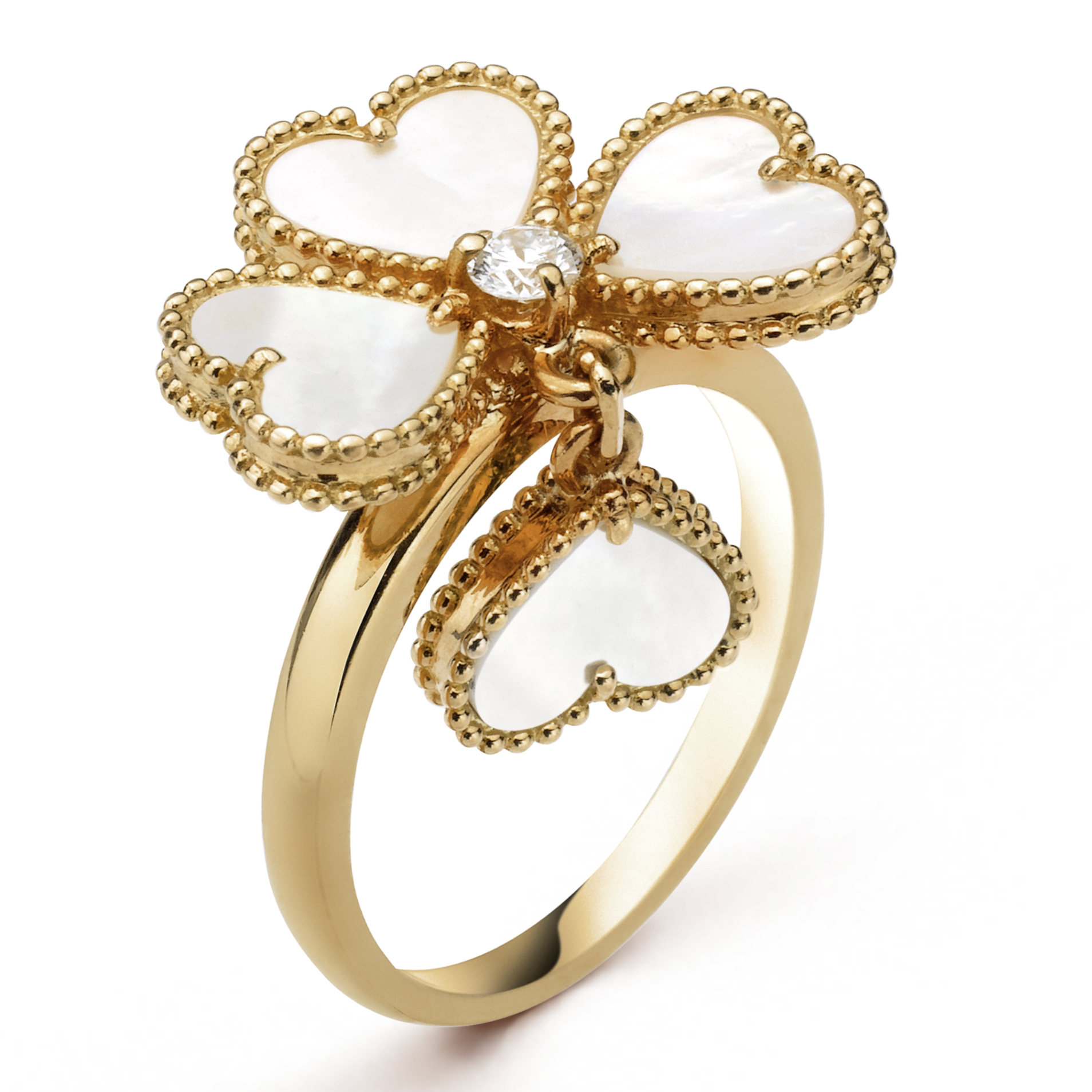 Pnstime Sweet Alhambra Effeuillage Pearls Ring Gift Jewelry