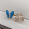 Pnstime Two Butterfly Between the Finger Turquoise Ring for Women