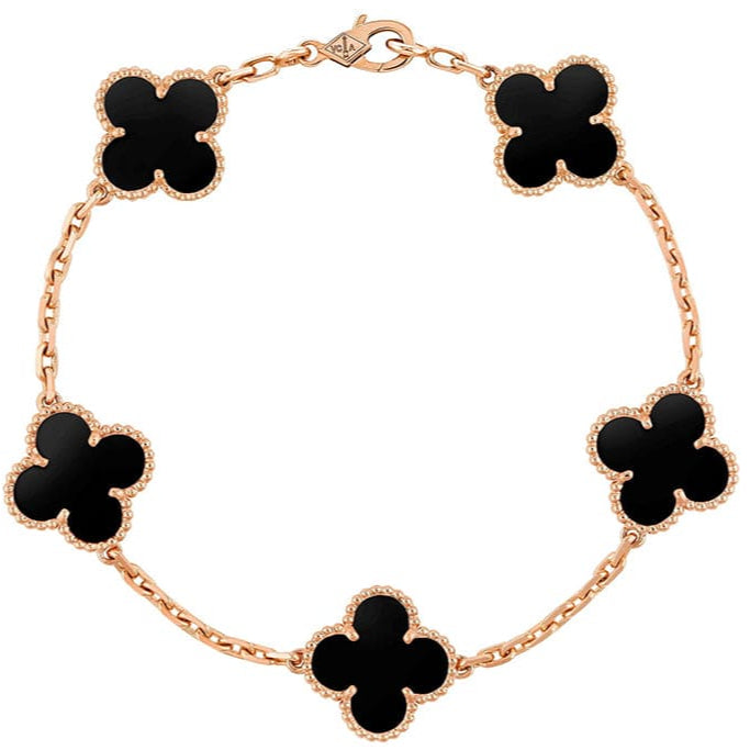 Pnstime Vintage Alhambra Five Motifs Clover Onyx Bracelet Gift Jewelry