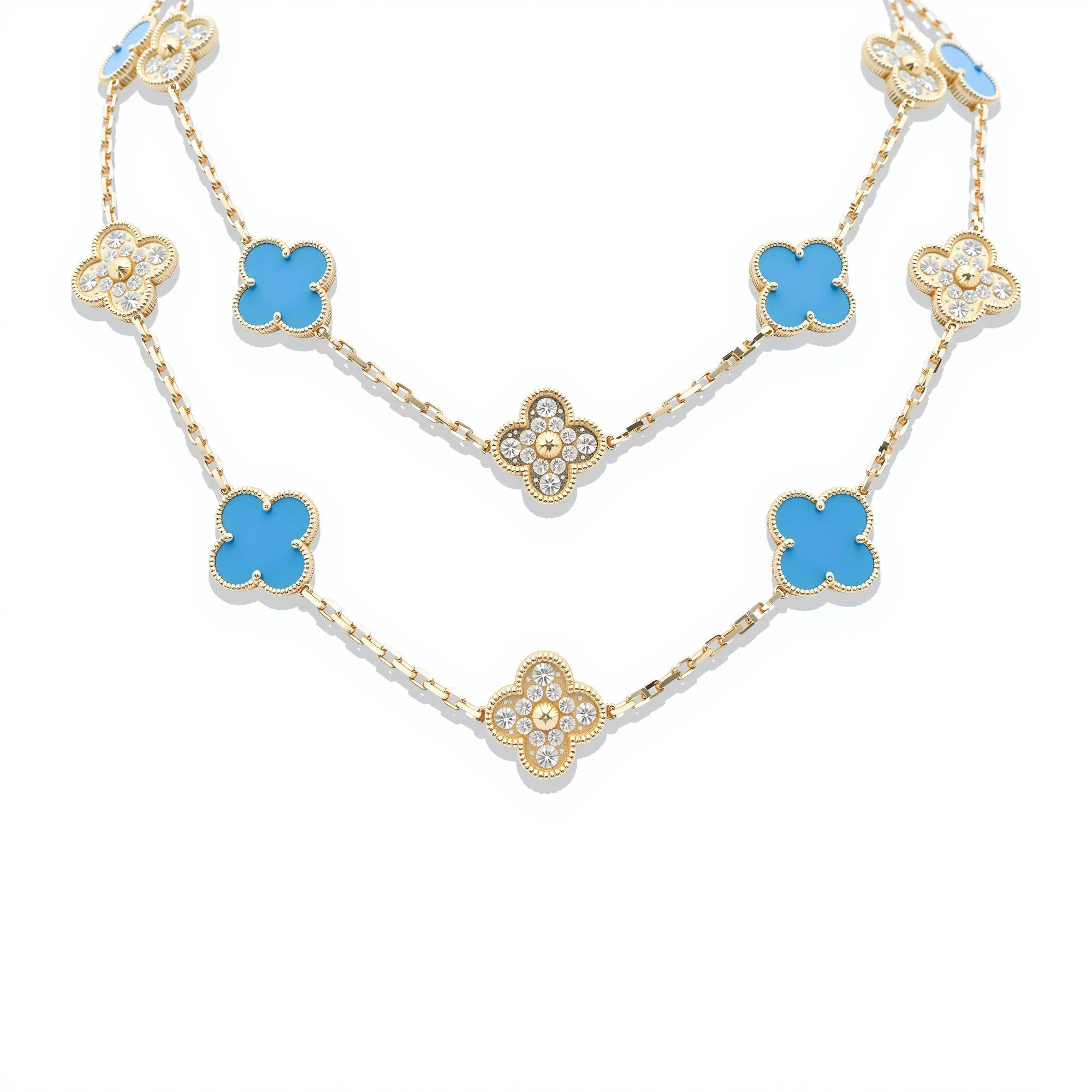 Pnstime Vintage Alhambra Turquoise Diamond 20 Motifs Long Necklace Gift