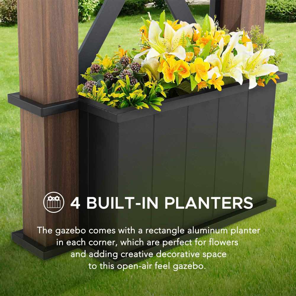 - Planter Base: Integrated planter boxes at the posts for a green, refreshing touch.