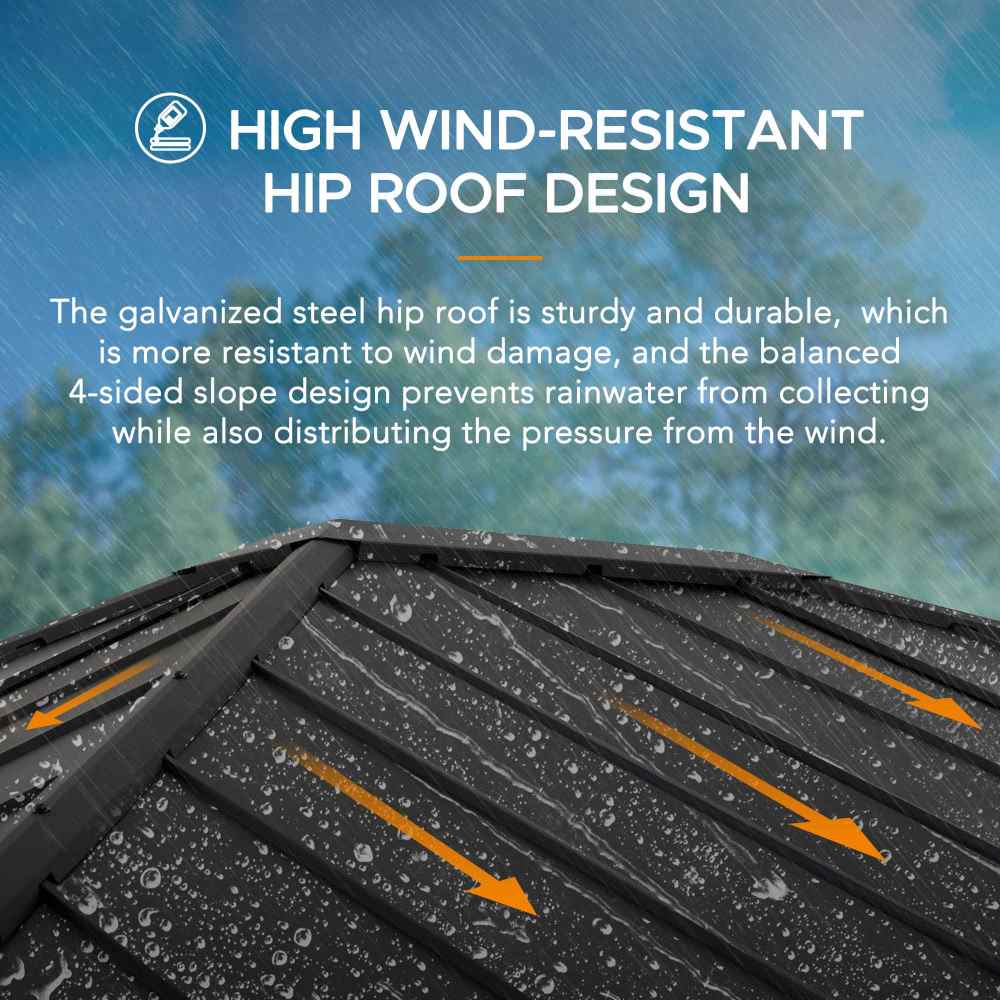 - Durable Steel Roof: Provides year-round weather protection and shade.