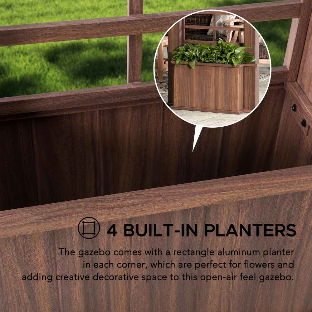 Rectangular Hardtop Gazebo with Steel Roof, Wooden Frame and Planter Boxes – Outdoor Pavilion