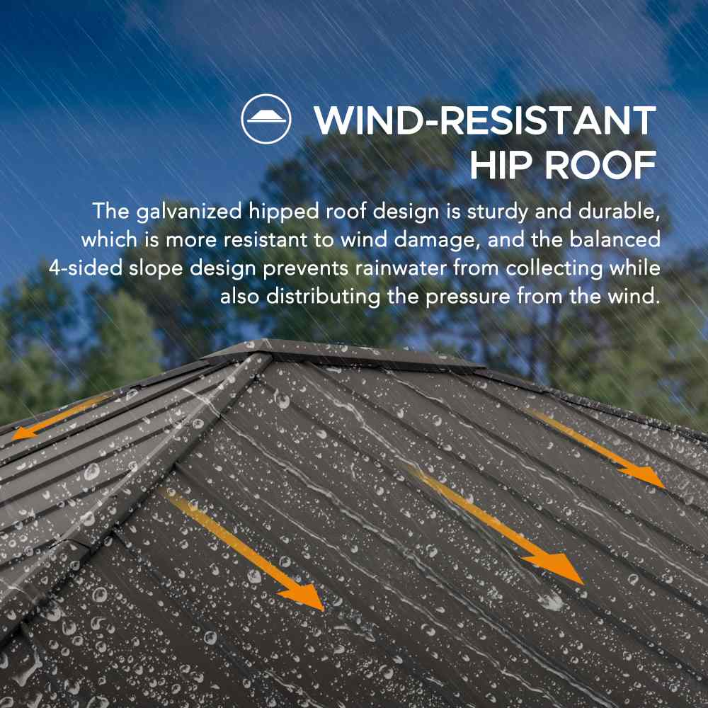 - Durable Hardtop Roof: Dark steel roof provides long-lasting weather protection.
