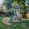 Storybook Playhouse Outdoor Playset – Tower, Wave Slide & Swings