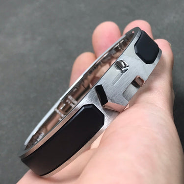 The Super H Black Bracelet is a bold expression of modern minimalism. Designed with a matte black enamel finish and a signature H-shaped clasp, it pairs a brushed stainless steel base with high-polish accents for a sleek, understated look.