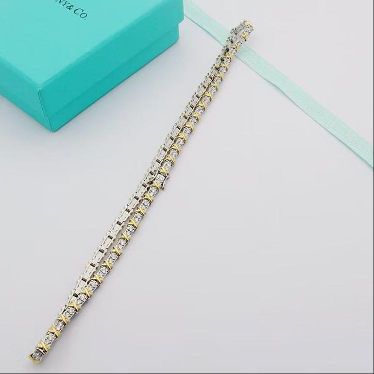 The T Schlumberger Eighteen Stone Choker Necklace blends sculptural elegance with classic sparkle. Featuring a continuous circle of stones set between signature X-shaped prongs, this design adds refined texture and visual interest.