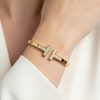 The T Smile Curved Bracelet embodies refined simplicity and timeless elegance. Crafted from 18K gold vermeil over a solid 925 sterling silver core, it offers radiant shine and long-lasting durability.