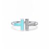 The T Wire Ring With Turquoise showcases sleek minimalism and modern elegance. Crafted in 18K white gold vermeil over a solid 925 sterling silver core, the ring features an open silhouette with a polished T motif on each end—one highlighted with vibrant turquoise enamel, the other adorned with sparkling cubic zirconia.