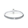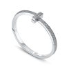 Its structured silhouette is embellished with high‑quality cubic zirconia (CZ) stones, delivering eye‑catching brilliance from every angle. A secure hinged clasp ensures a seamless, comfortable fit, while the sleek profile makes it perfect for both solo wear and stacking.