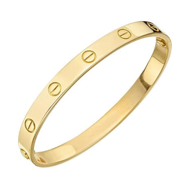 Measuring 6.1 mm in width, it features the iconic screw-motif detailing and a secure screw-lock clasp, reflecting a modern yet enduring expression of love. The smooth, high-polish finish enhances its sophisticated silhouette, offering timeless appeal for any wardrobe.