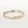 Timeless and symbolic, this tricolor interlocking bracelet showcases a sleek blend of yellow, rose, and white gold tones—representing unity, love, and balance.