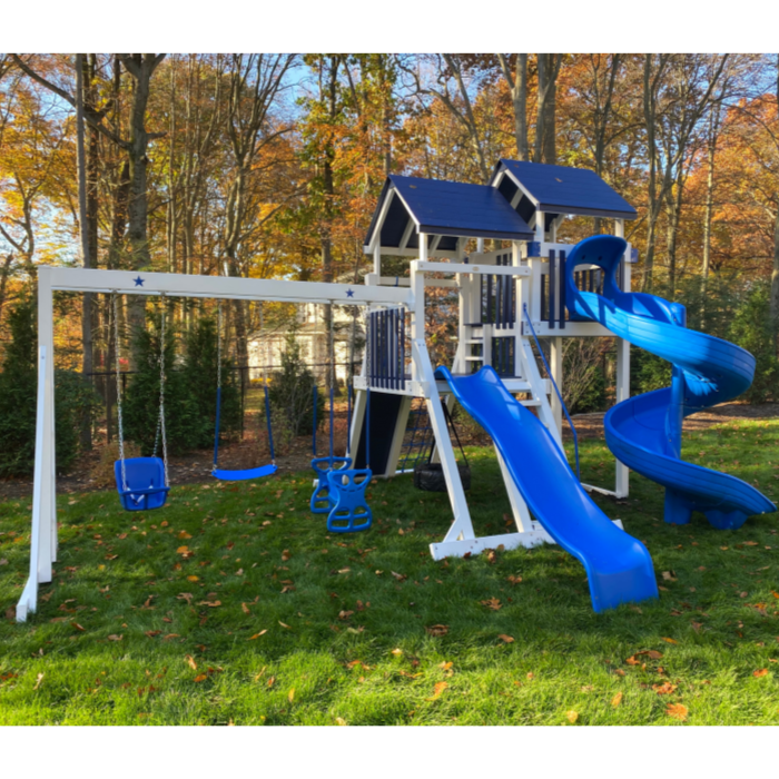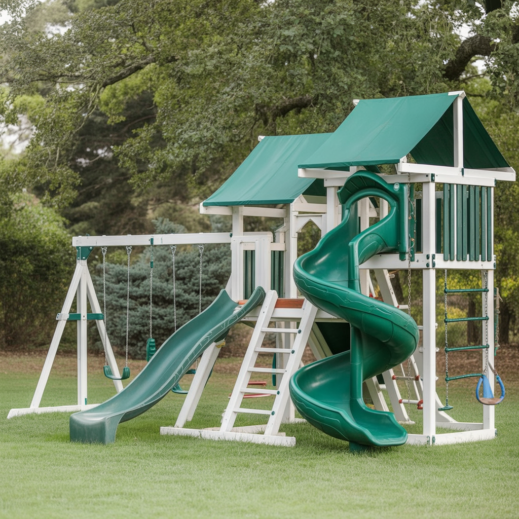 Twin Tower Vinyl Swing Set – Backyard Playground with Spiral Slide, Straight Slide, and Swings