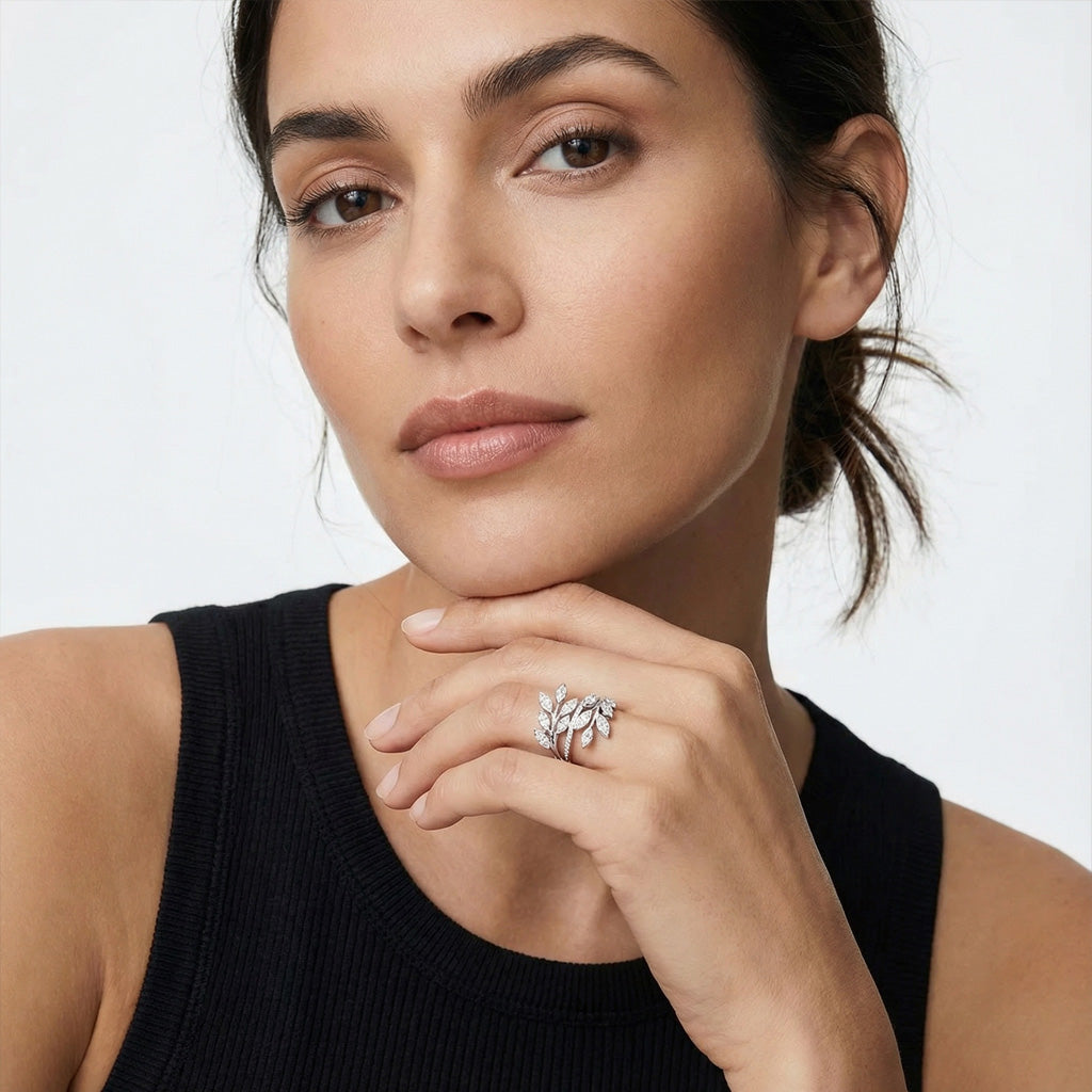 Embrace nature-inspired elegance with the Victoria Vine Bypass Ring, a graceful piece designed to reflect the delicate beauty of climbing leaves.