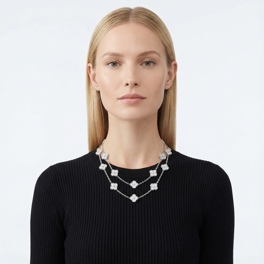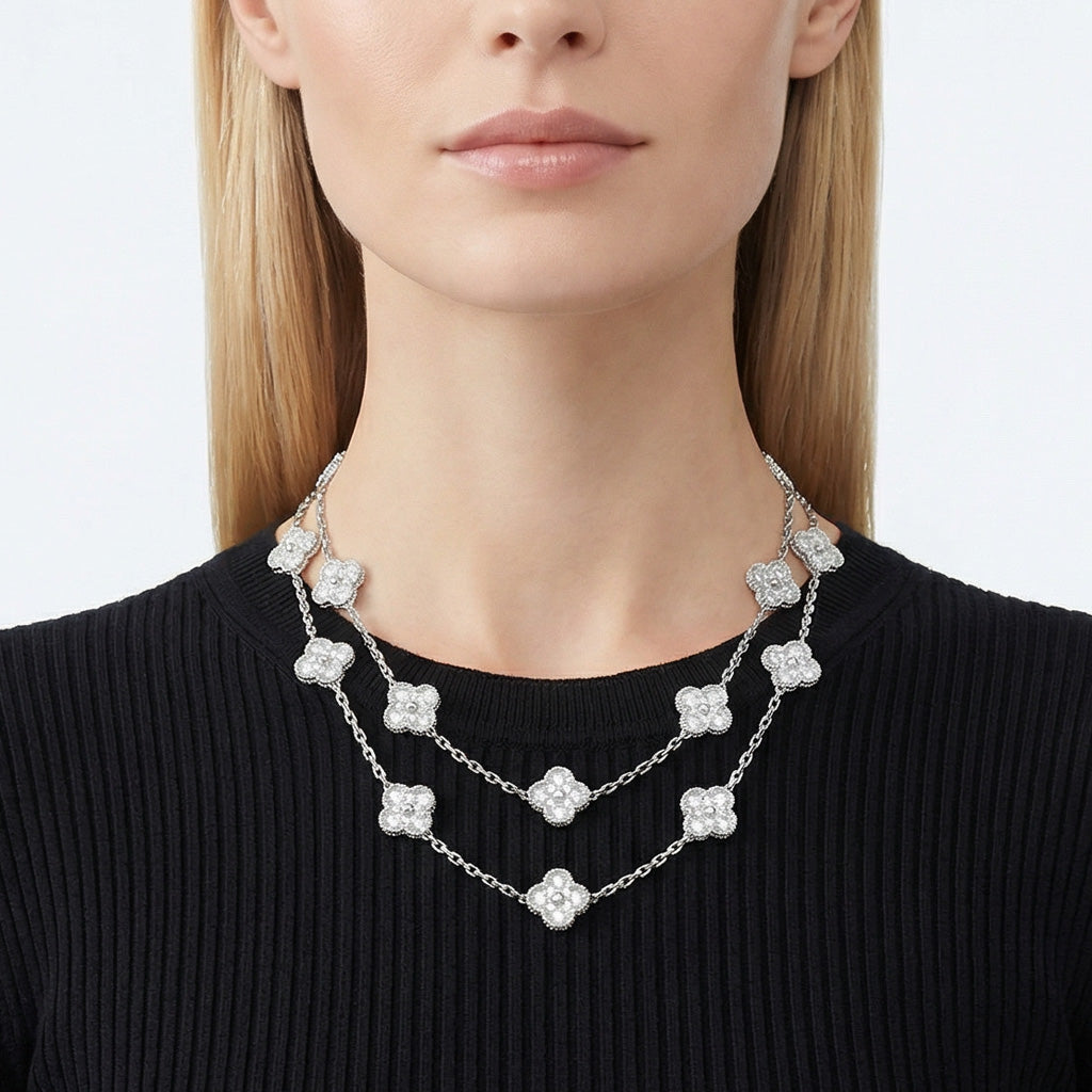 The Vintage Alhambra 20 Motifs Long Necklace exudes timeless elegance through its signature clover motif—a symbol of harmony and grace. Each of the 20 motifs is intricately adorned with brilliant-cut cubic zirconia (CZ), creating a radiant sparkle across the length of this refined statement piece.