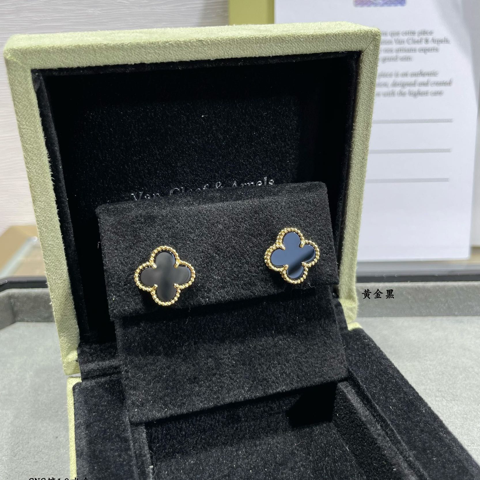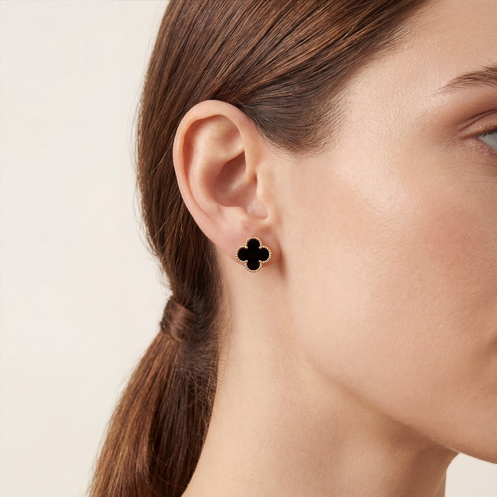 The Vintage Alhambra Black Stone Earrings are a timeless expression of elegance and sophistication, inspired by the classic four‑leaf clover motif. Featuring deep black stone‑patterned inlays framed in rich gold tones, they deliver a refined yet bold statement.